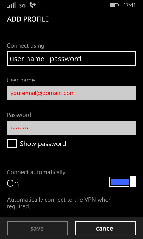 Tap Save once you are done, to save your VPN settings. That’s it!