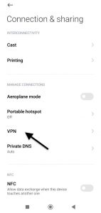 1. Najpierw należy przejść do ustawień urządzenia i jak pokazano na poniższym zrzucie ekranu, przejść do sekcji “Network & internet”, a następnie kliknąć wiersz “VPN”.