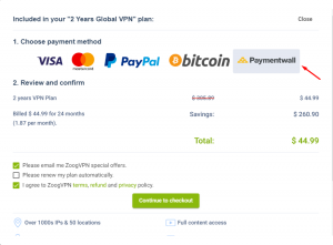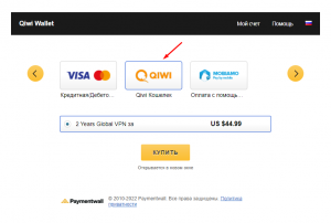 Один из самых простых способов как оплатить VPN из России – использовать QIWI Кошелек. Для этого просто выберите соответствующий план, затем укажите платежный метод Paymentwall.