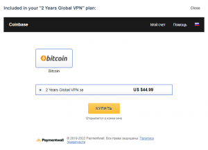 Если Вы храните Ваши деньги в криптовалюте, Вы также можете их использовать для покупки VPN в России. Для этого после выбора необходимого плана выберите Bitcoin как метод Вашего платежа.