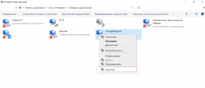 6. Нажмите правой кнопкой мыши на текущий VPN (ZoogVPN) адаптер и выберите “Свойства”