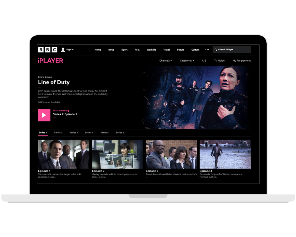 BBC iPlayer is a popular British service that encompasses various shows, series, movies, and live streams from different UK channels. BBC iPlayer is free of charge for every British taxpayer located within The United Kingdom. Line of duty, Doctor Who, Royal events and ceremonies, and many other brilliant shows are streamed exclusively on BBC channels.